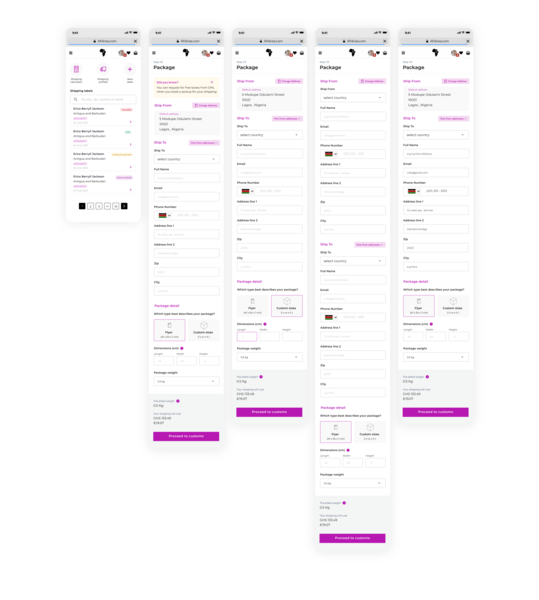 What if we broke the shipping process into distinct steps—package details, sender info, recipient info, customs, review—so sellers could focus on one thing at a time?